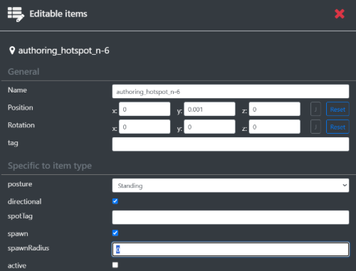 - Uncheck the alternative navigation hotspots Active field to off (or alternatively delete them if you will not be using bots in the space)