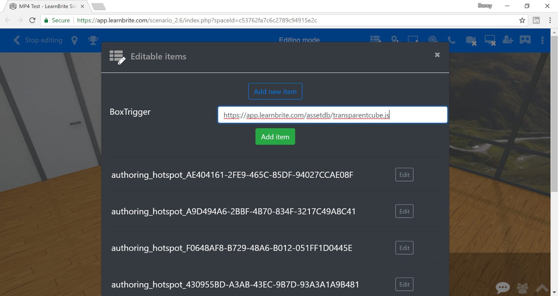 If you are using LearnBrite’s Storage solution, you should make sure that the assets loaded in the scene are loaded from it – or another CDN, in programmer-speak. You can confirm this by looking at the URL of the item (in the field lbAssetFile) in the object’s properties, it should start with https://cache.learnbrite.com. This will not help when a user first loads the space, but it will make any future visit load much faster.