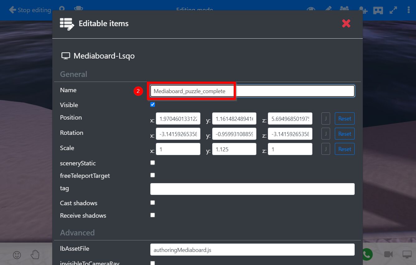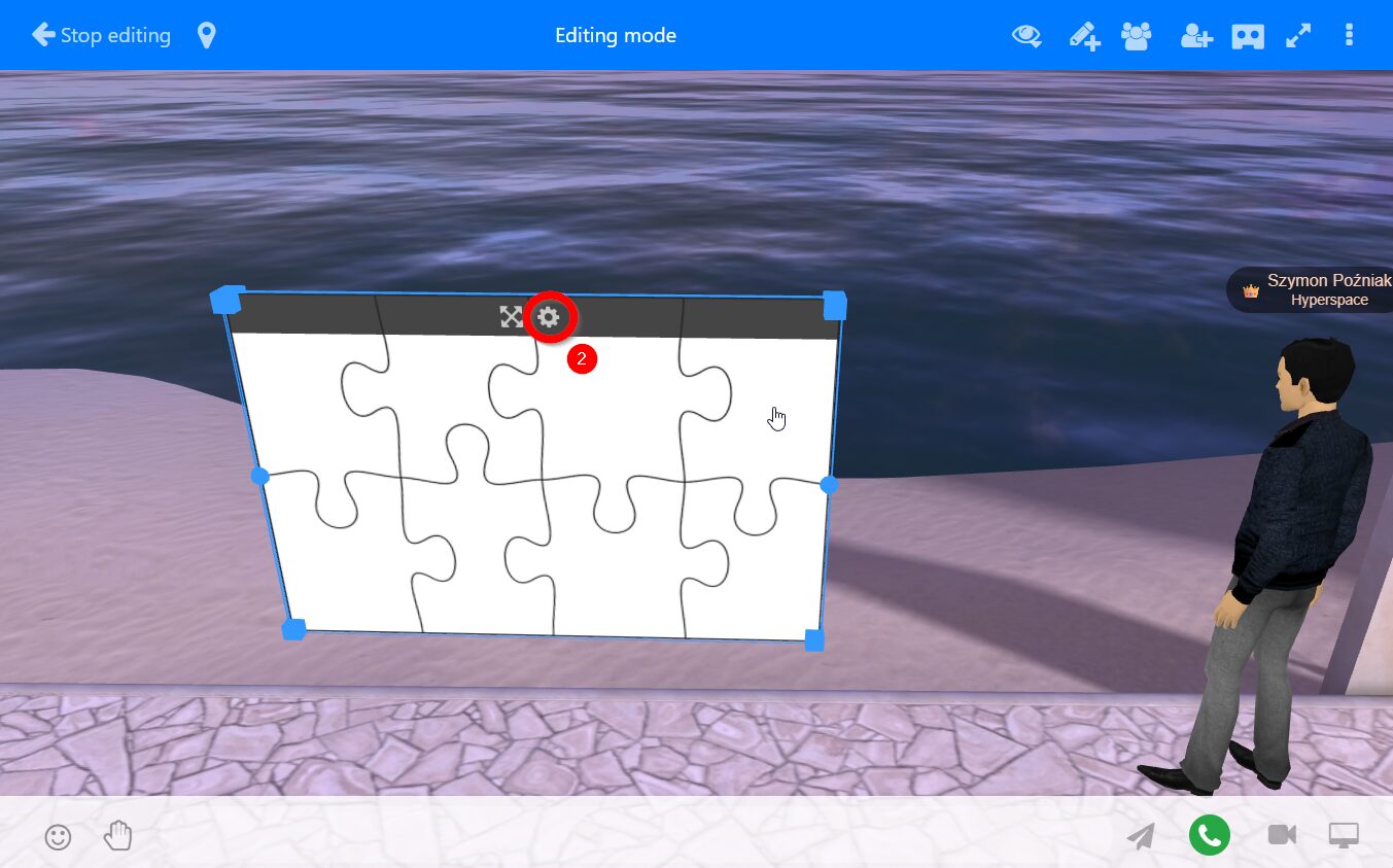 - Click the cog icon next to the puzzle object in editing mode