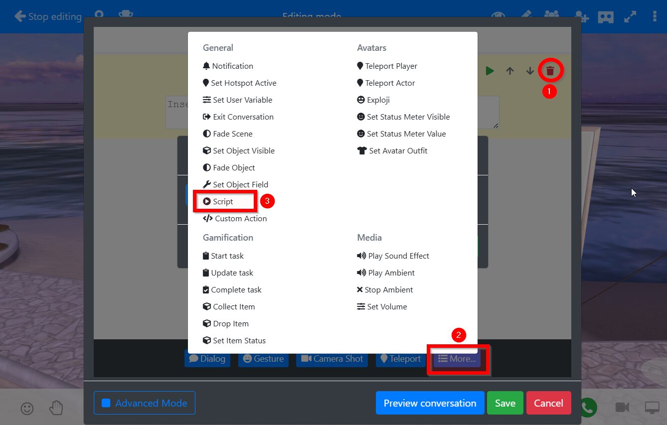 - Select the Script option