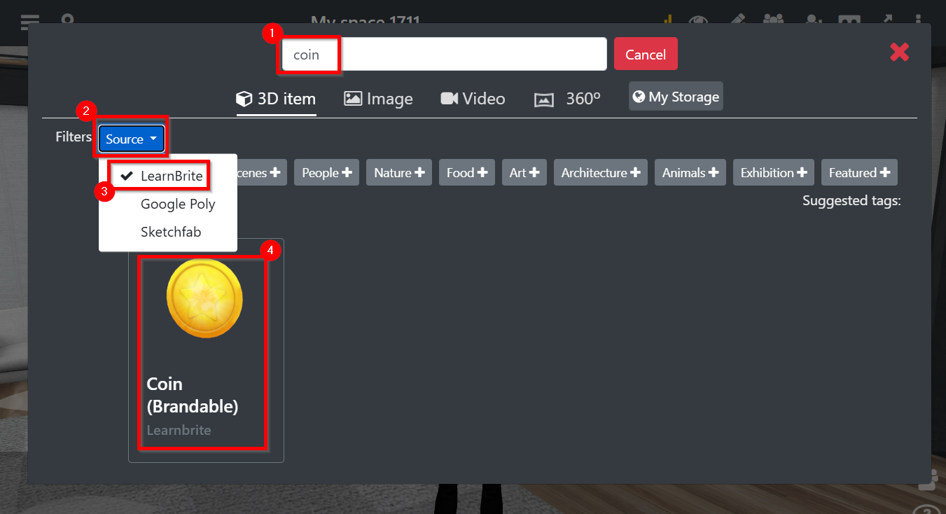 - Click the Coin (Brandable) to add it to the space